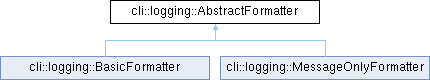 Implemented in cli::logging::BasicFormatter, and cli::logging::MessageOnlyFormatter.